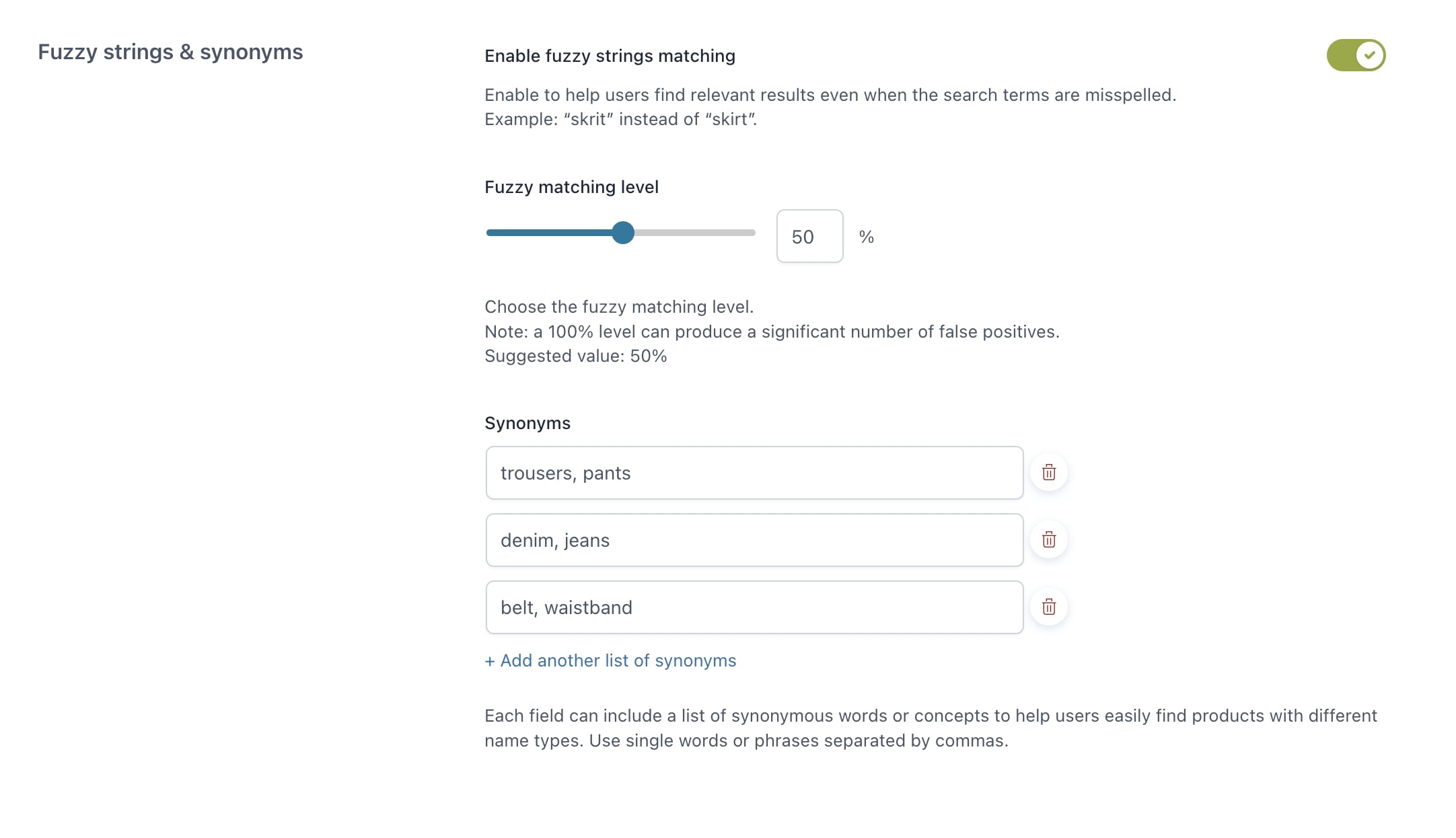 Configura set di sinonimi per agevolare la ricerca, indipendentemente dalle parole chiave utilizzate dall’utente
