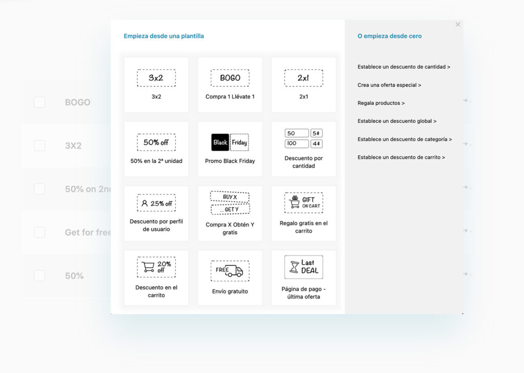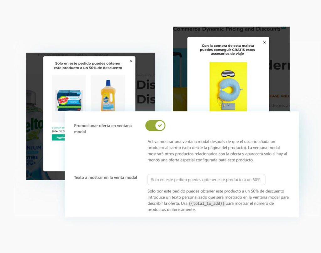 El único límite para la creación de ofertas especiales será el de tu imaginación: a través del panel intuitivo del plugin, puedes crear cualquier tipo de promoción, elegir a qué productos aplicarlas, y si programarlas por un tiempo determinado.