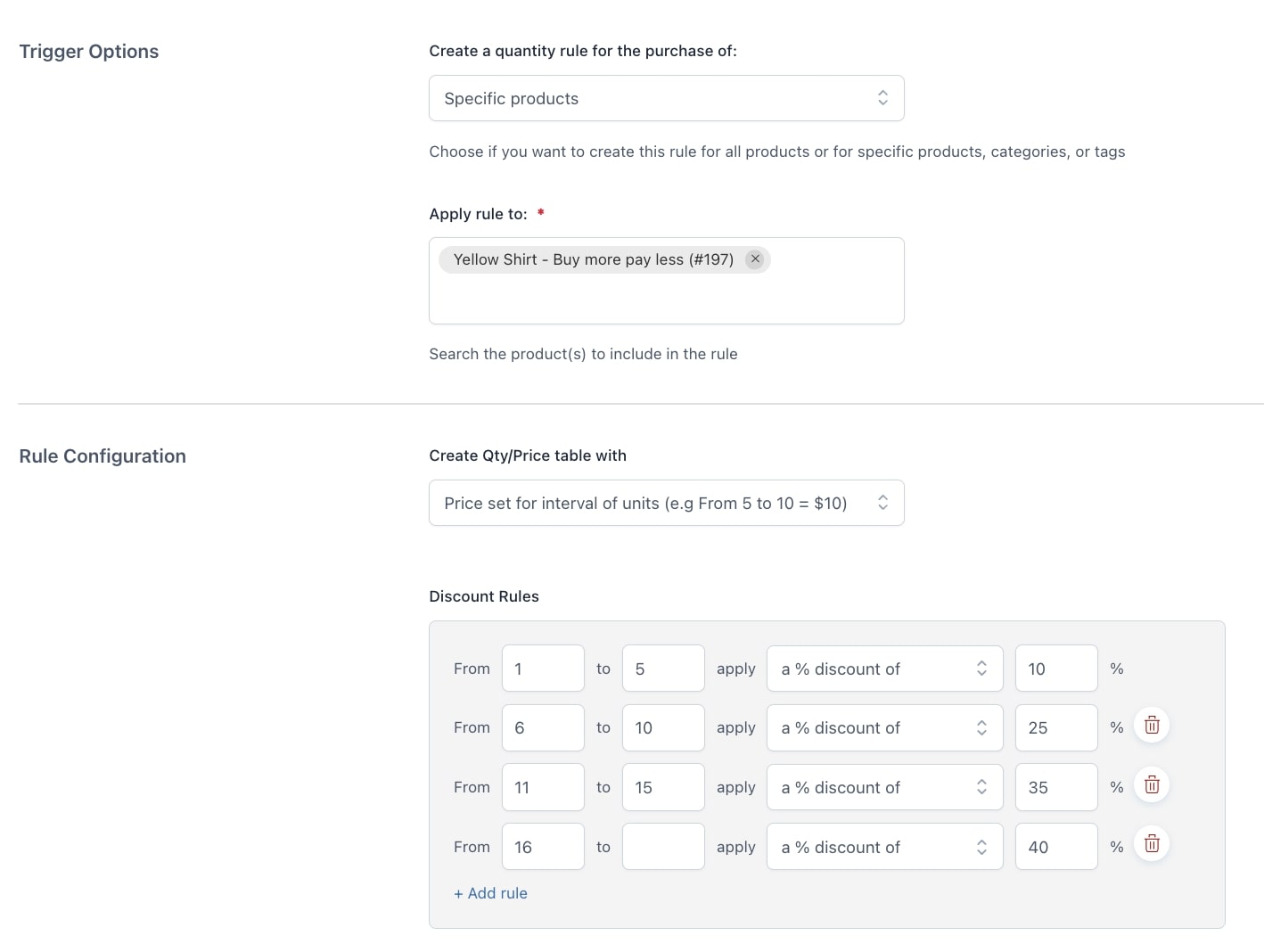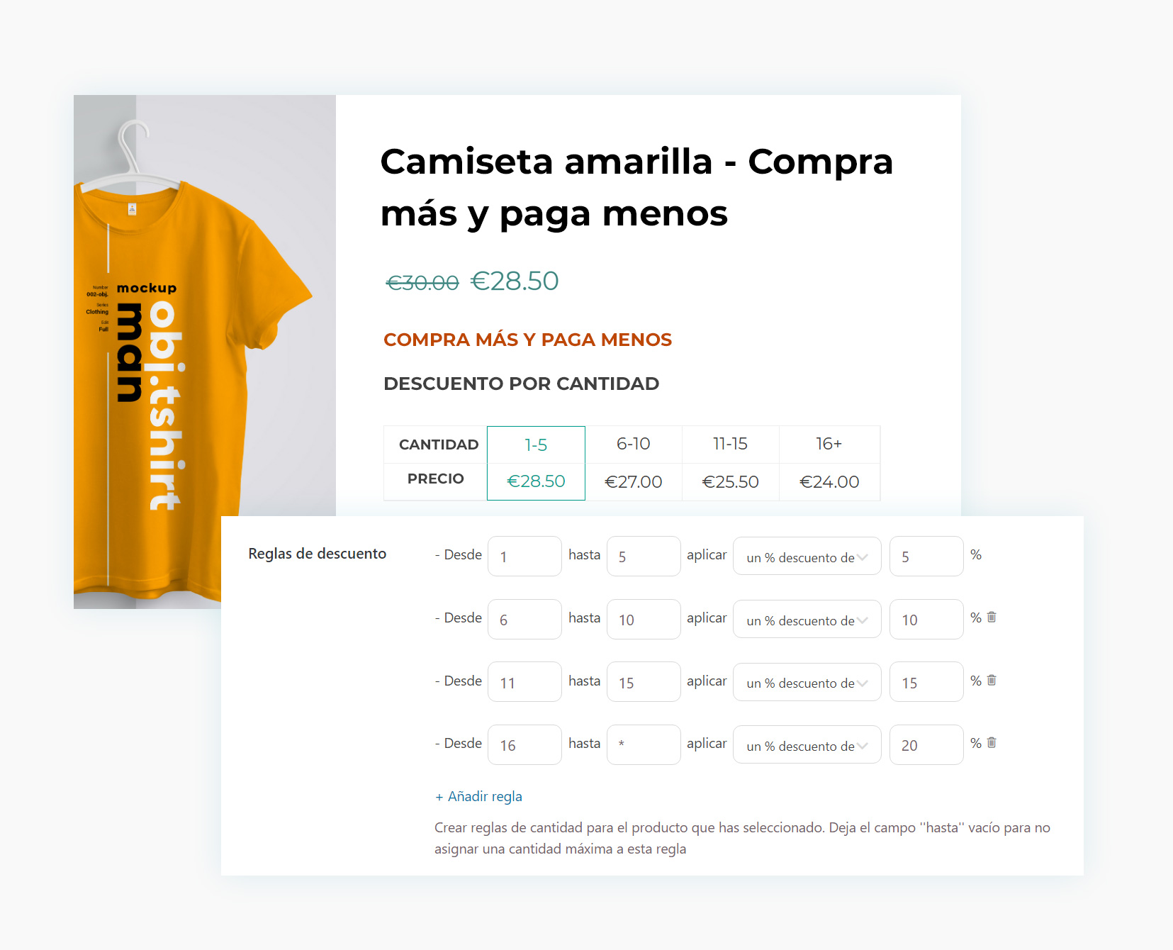 Establece descuentos dinámicos en función de la cantidad del producto y elige si deseas mostrar o no la tabla de cantidad/precio para informar a tus usuarios sobre la promoción
