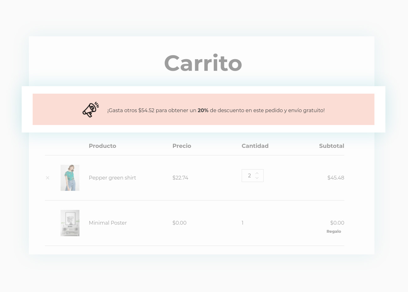 Mostrar mensajes dinámicos en el carrito para animar a los usuarios a gastar más y aprovechar los descuentos y el envío gratuito