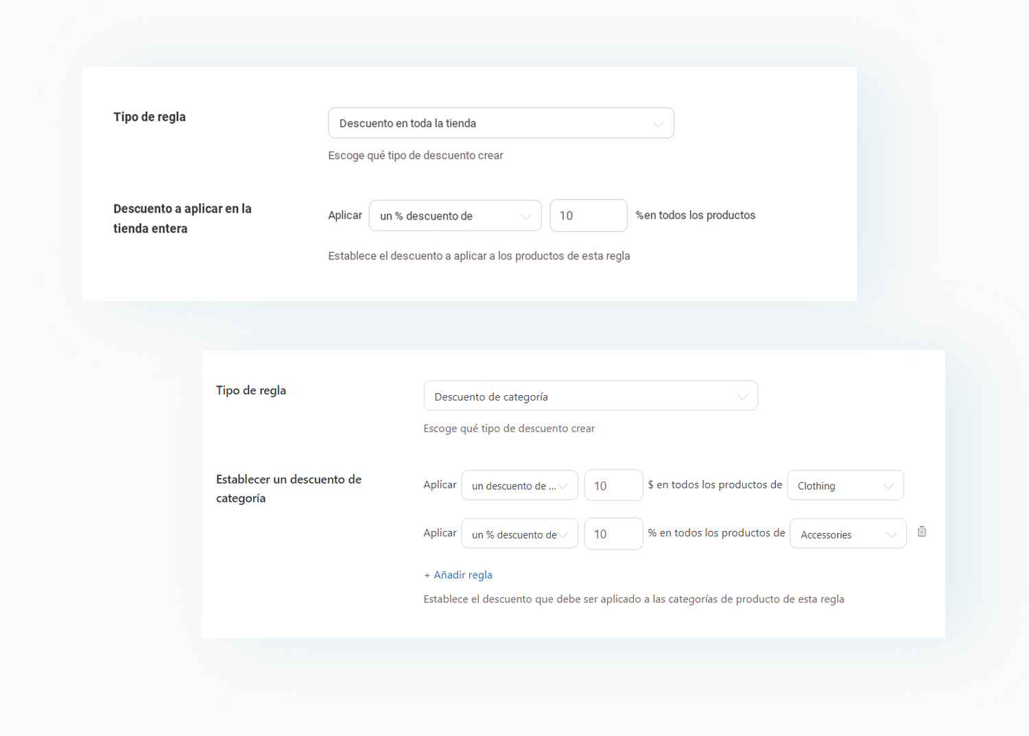 Aplicar un descuento masivo en todo el catálogo de la tienda o en productos de una categoría en específico con pocos clics