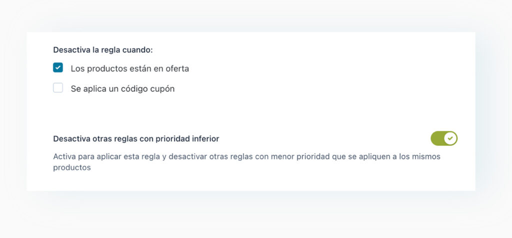 Elige si quieres permitir que tus clientes acumulen múltiples promociones y obtengan un mayor beneficio, o si establecer límites para que puedan aprovechar solo una oferta a la vez cuando compren en tu tienda.