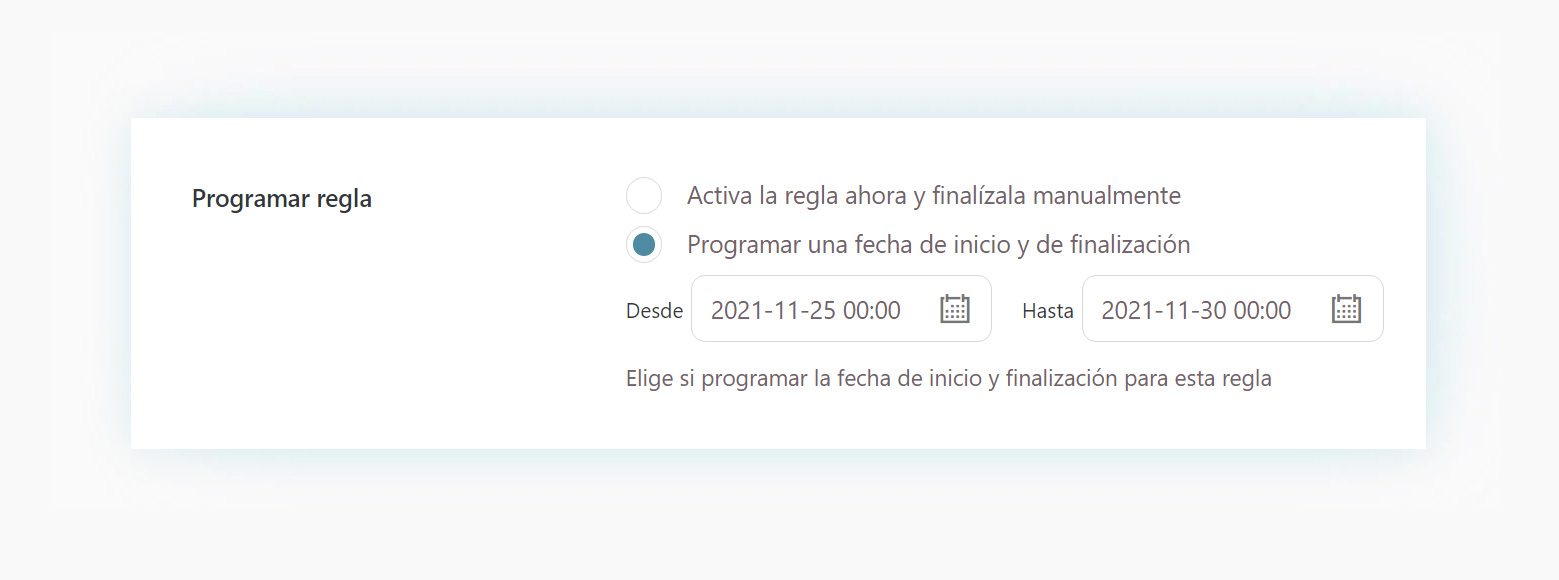 Programar una fecha de inicio y final para las reglas y automatizar los descuentos y ofertas
