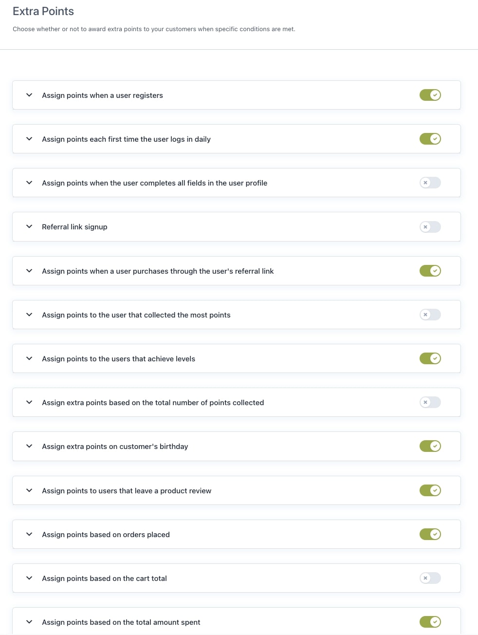 Asigna puntos extra en función de la consecución de algunos objetivos o de determinadas condiciones como el cumpleaños de los usuarios, cuando publican una valoración, etc.