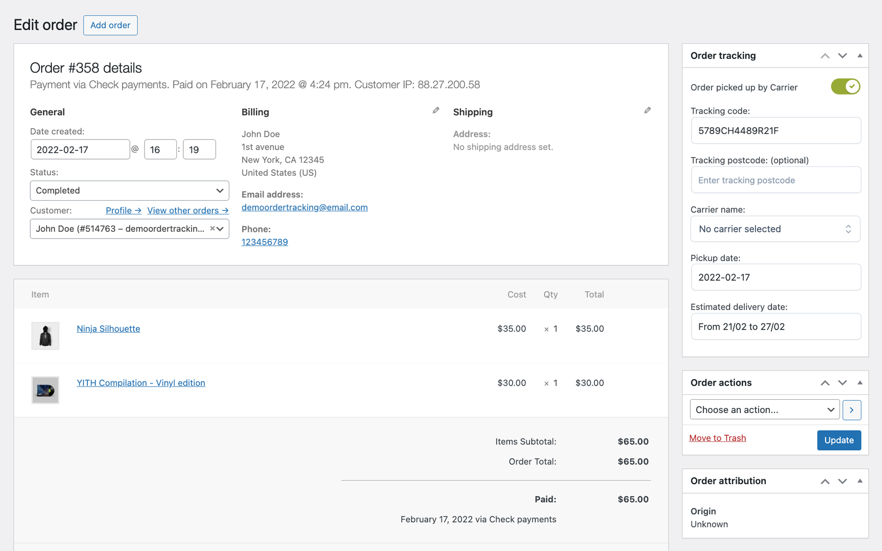 YITH WooCommerce Order & Shipment Tracking