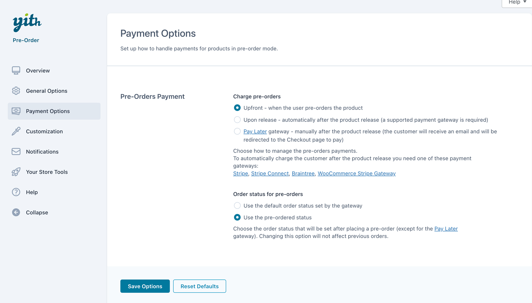 With the integration with our plugins YITH Stripe, YITH Stripe Connect or YITH Braintree you can also sell the pre-orders and automatically charge the customer’s credit card only when the product becomes available: no manual payment will be required to the users and everything will run smoothly and seamlessly.