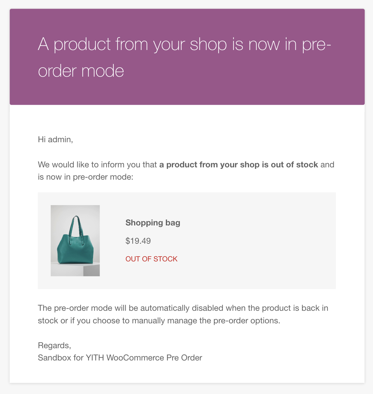 Automatically send emails to the customers to confirm the pre-order and to keep them updated about the availability date and the pre-order status. The plugin also provides several notifications for the admin to help him/her easily manage pre-orders and products.