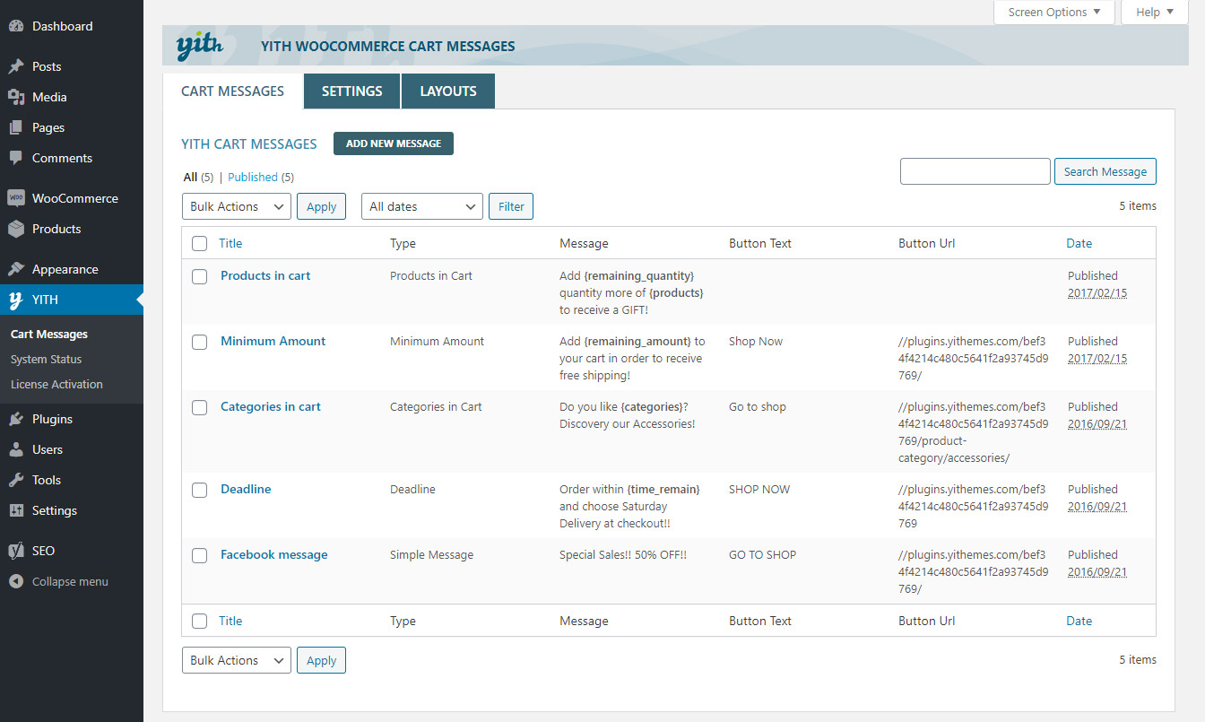 WITH YITH CART MESSAGES YOU CAN: