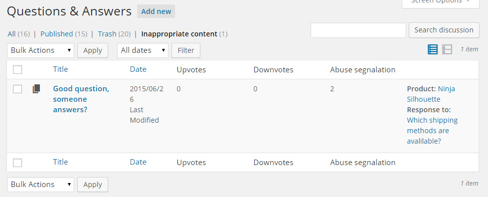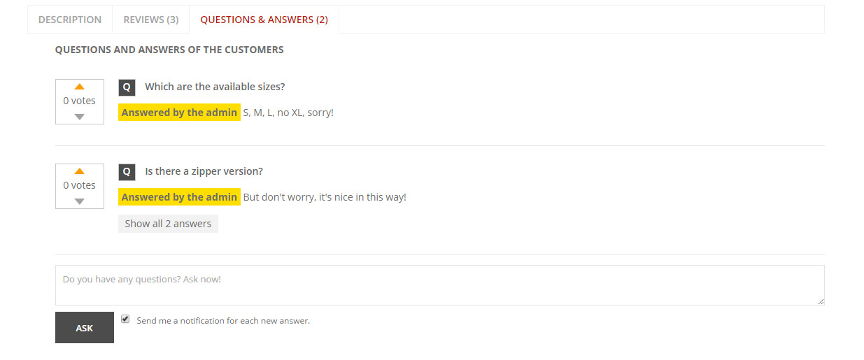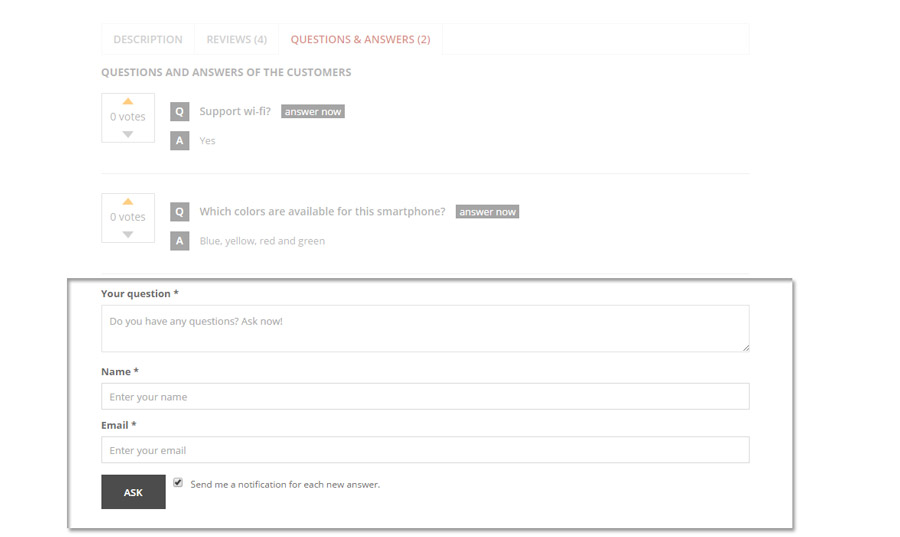 Set questions and answers in product page
