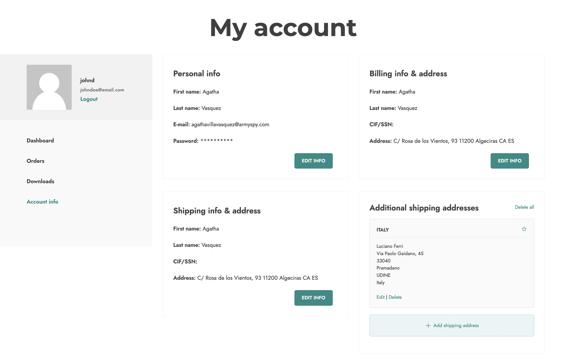 Your customers will be able to add, edit, and remove shipping addresses in the dedicated section inside their accounts.