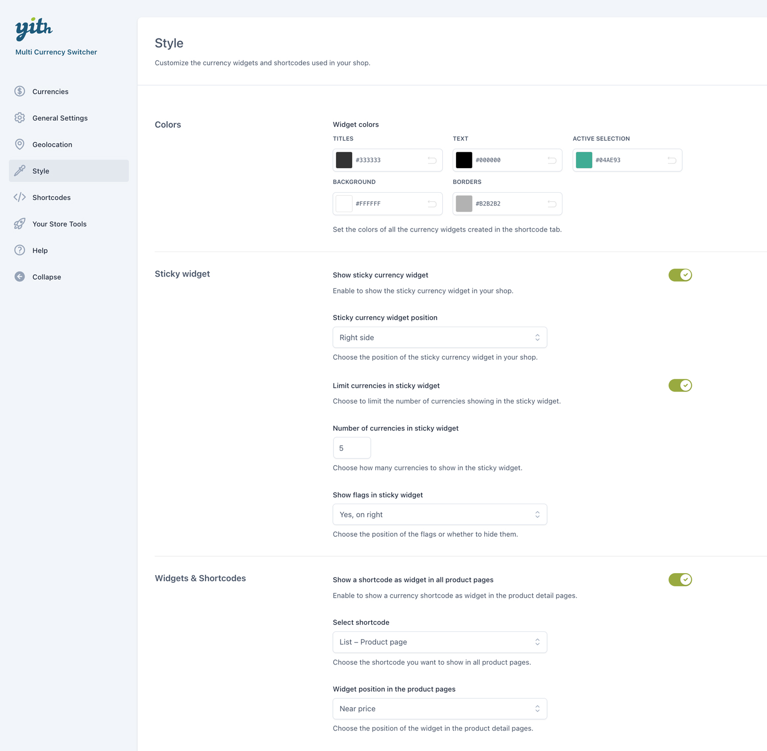 Customize the look of every shortcode with your own colors and style, flag display, and flag position. Every widget has a modern and minimal style that makes all the tools perfect for any e-commerce theme.