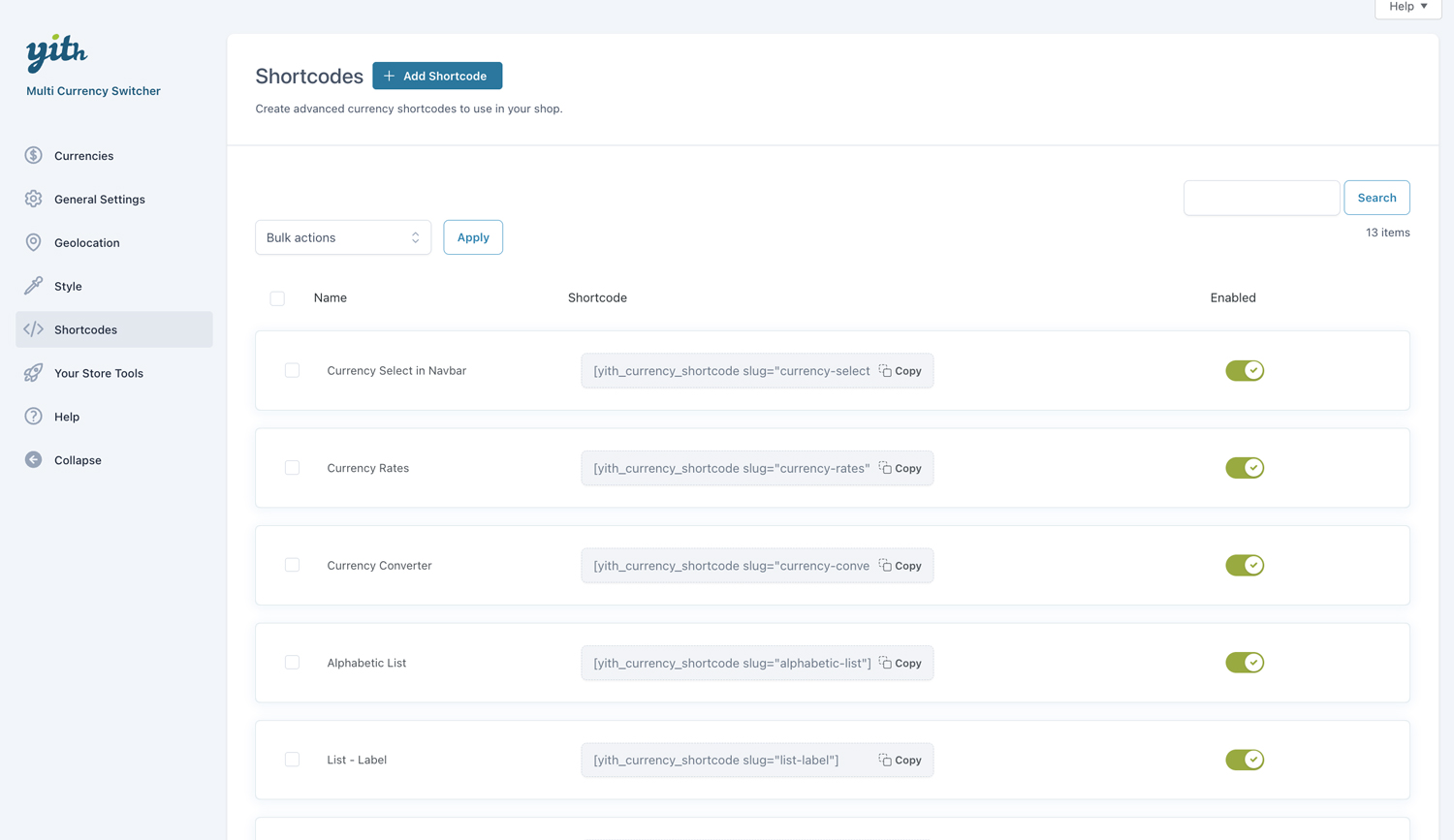• Show the shortcodes everywhere in your shop using the YITH Multi Currency Shortcode widget, the shortcode itself or the Gutenberg block. You can show a currency selector in the shop header, in a sidebar, in the footer, etc.