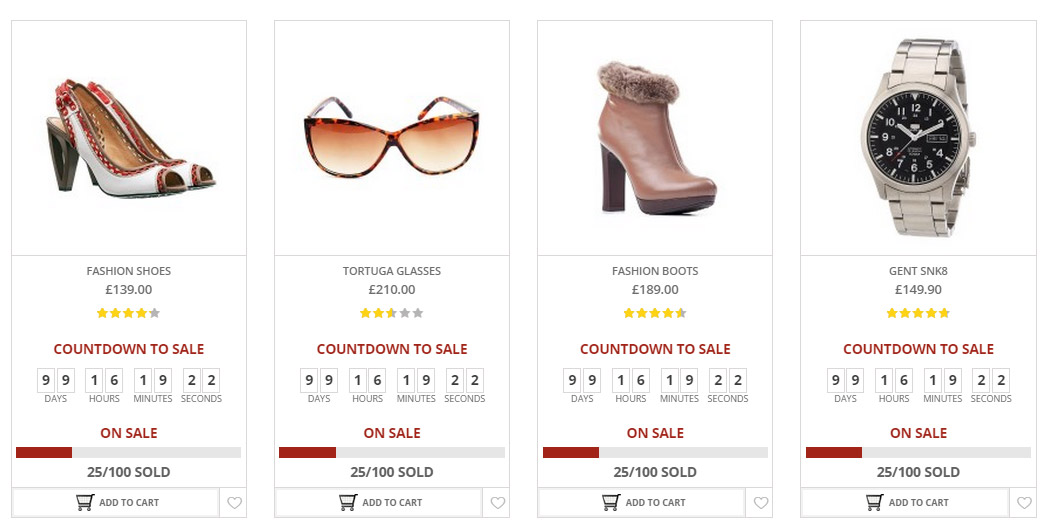 • Freedom to place a unique countdown for groups of products (product selection, product category, recent products, discounted products, “featured” products)