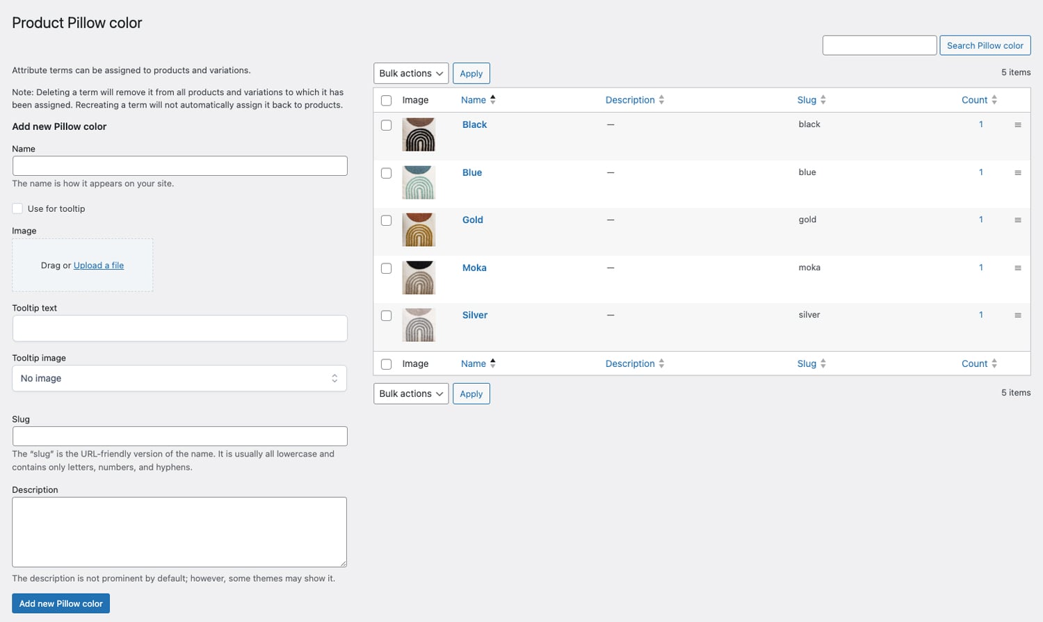 Create “Color swatches” attributes