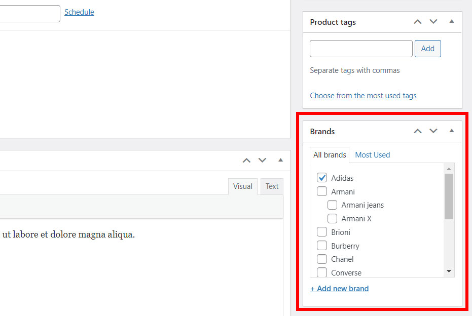 Set up other product taxonomies available as “brands” (i.e. categories, tags, and attributes)