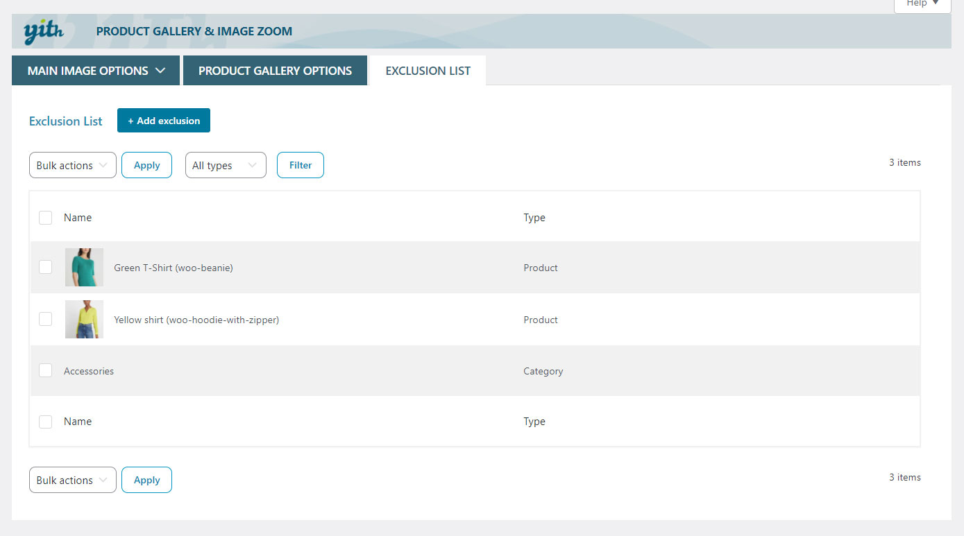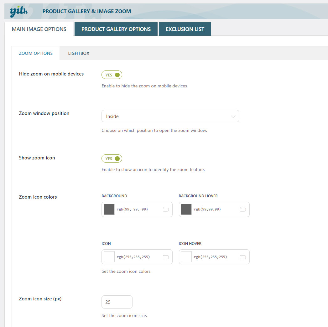 Do you want to disable the zoom option on some products or specific categories of your shop and keep it active only on selected products? The Exclusion List bundled in the plugin will grant you the highest flexibility.