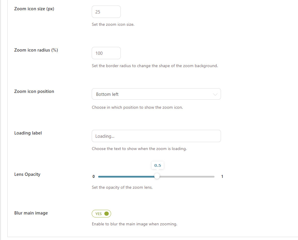 What the plugin does Enable a zoom feature on product images and manage the product gallery thumbnails in advanced way.