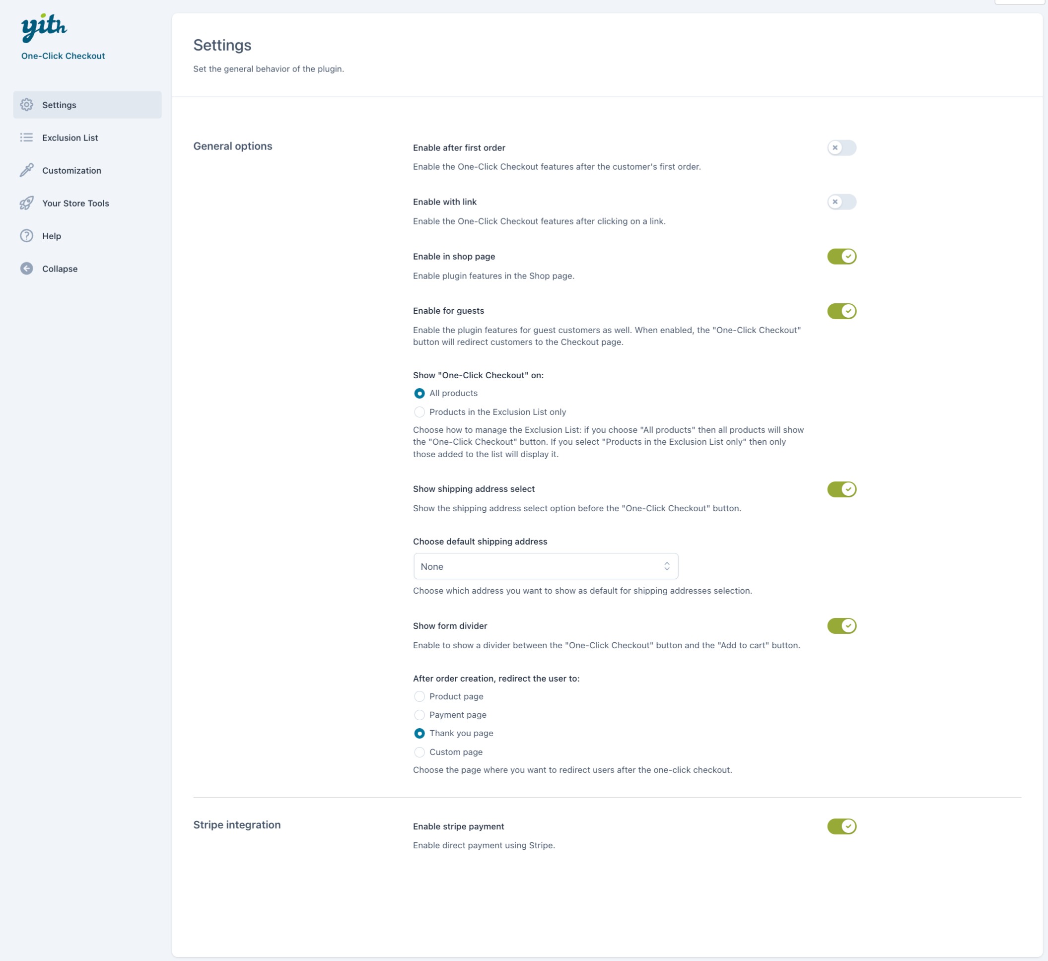 YITH One-Click Checkout and YITH Stripe are the best combination of plugins to simplify the purchase process in your shop. They are integrated to allow your customers to order with just one click and have the product immediately paid for by charging their saved credit card.