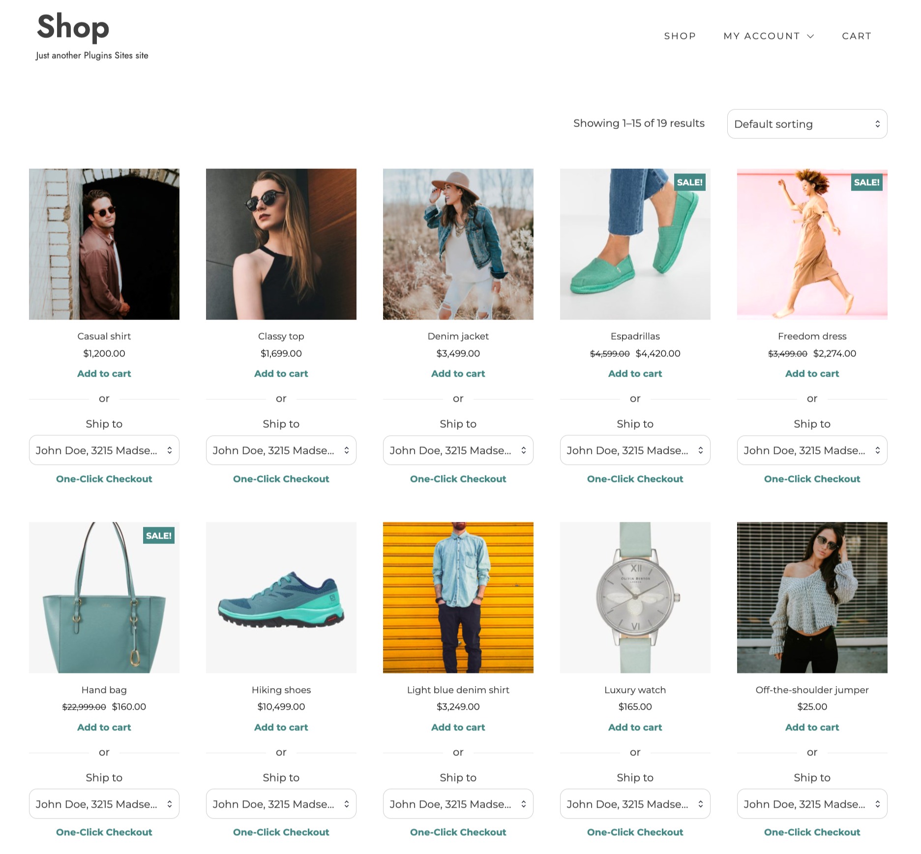 • Show the “One-Click Checkout” button on the Shop page or on the product detail page