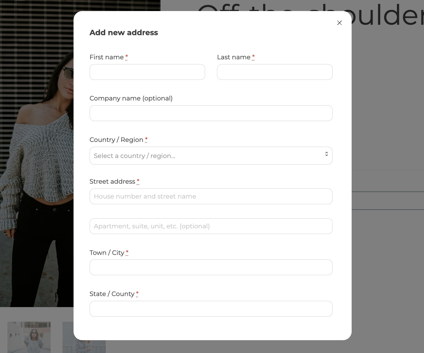 This option lets customers see all their saved addresses, choose where to receive the product they are buying, and quickly add a new address without leaving the product selection and purchase process.