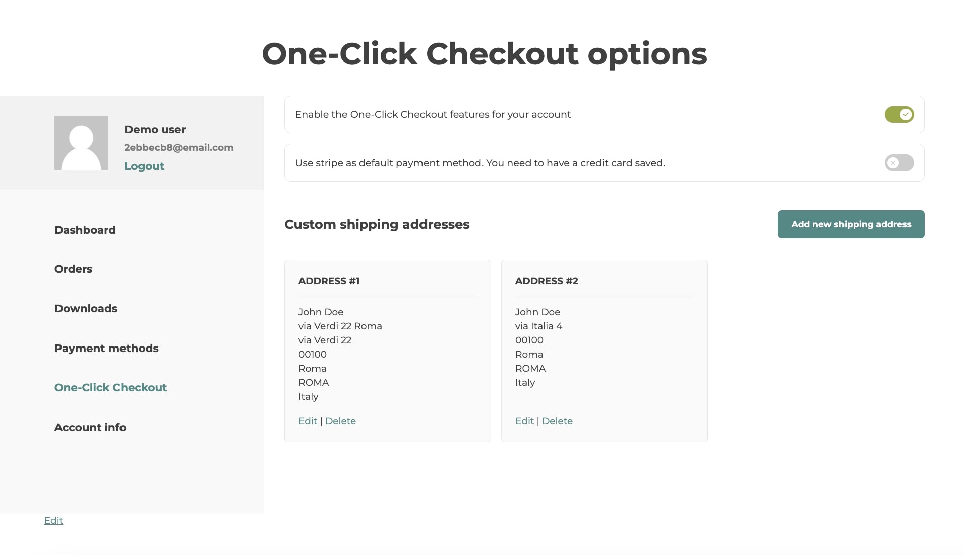 • Allow customers to enable/disable the One-Click Checkout option in the dedicated section on My Account