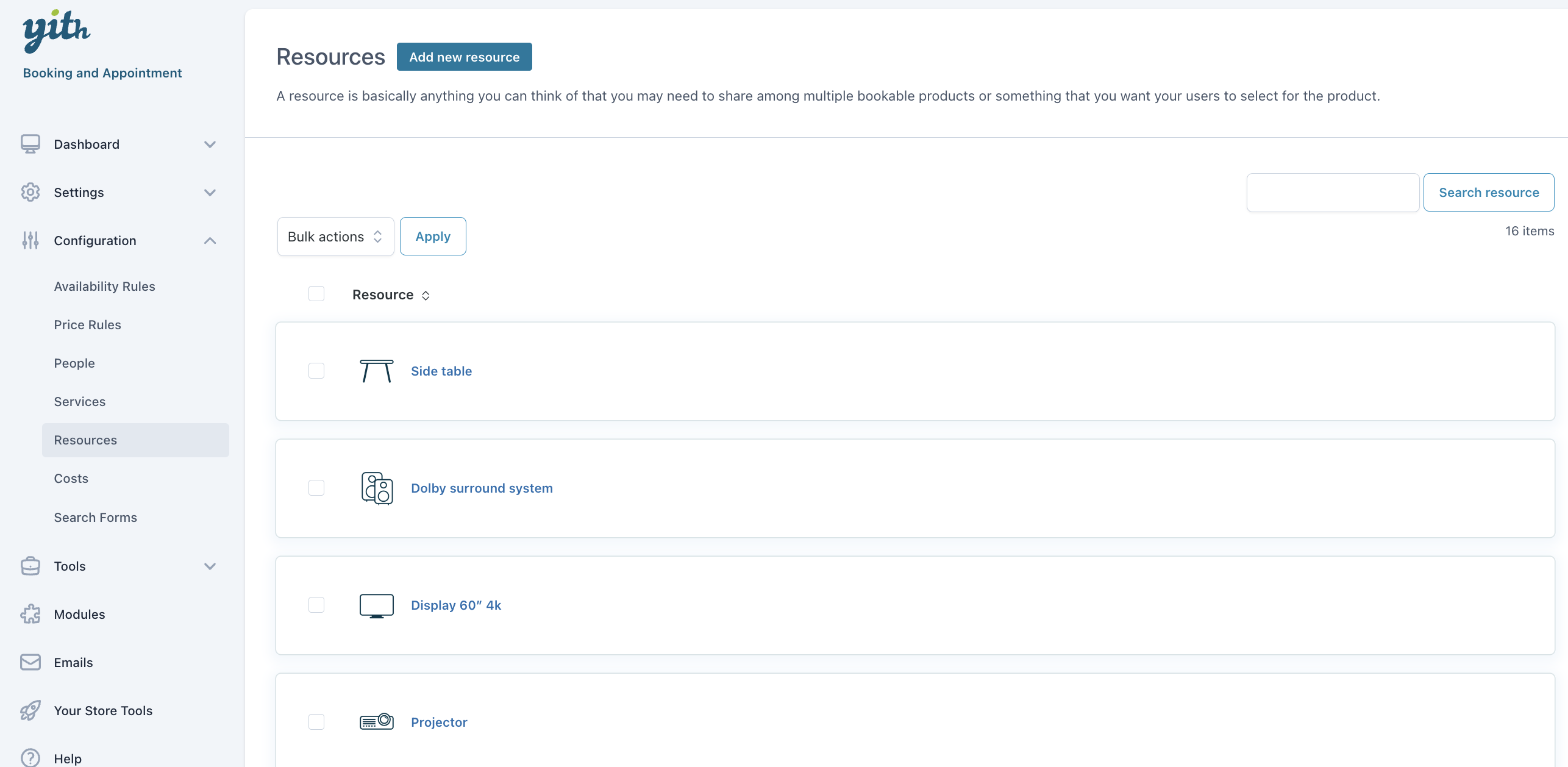 Do you want to book a meeting room and provide your clients with extra resources like a projector, monitors, flipcharts? Or do you want your users to be able to choose the doctor, the legal advisor or the hair stylist they prefer when they book a service on your website? The new “Resources” module is so versatile and flexible that you can manage almost any possible scenario. The only limit is your imagination.