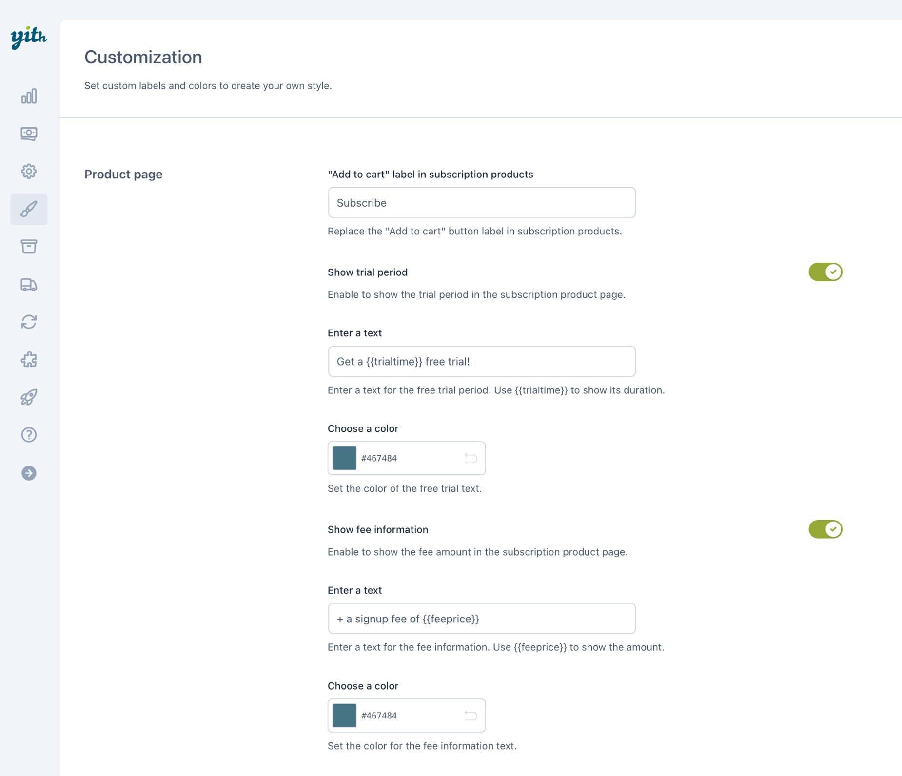 Questo plugin si integra perfettamente con YITH WooCommerce Subscription permettendo ai tuoi utenti di acquistare un abbonamento per diversi servizi, come ad esempio un prodotto in abbonamento con un set personalizzato di add-on.