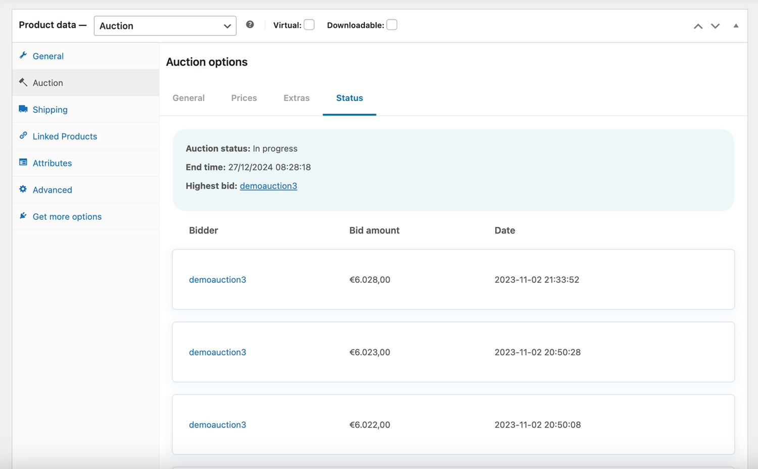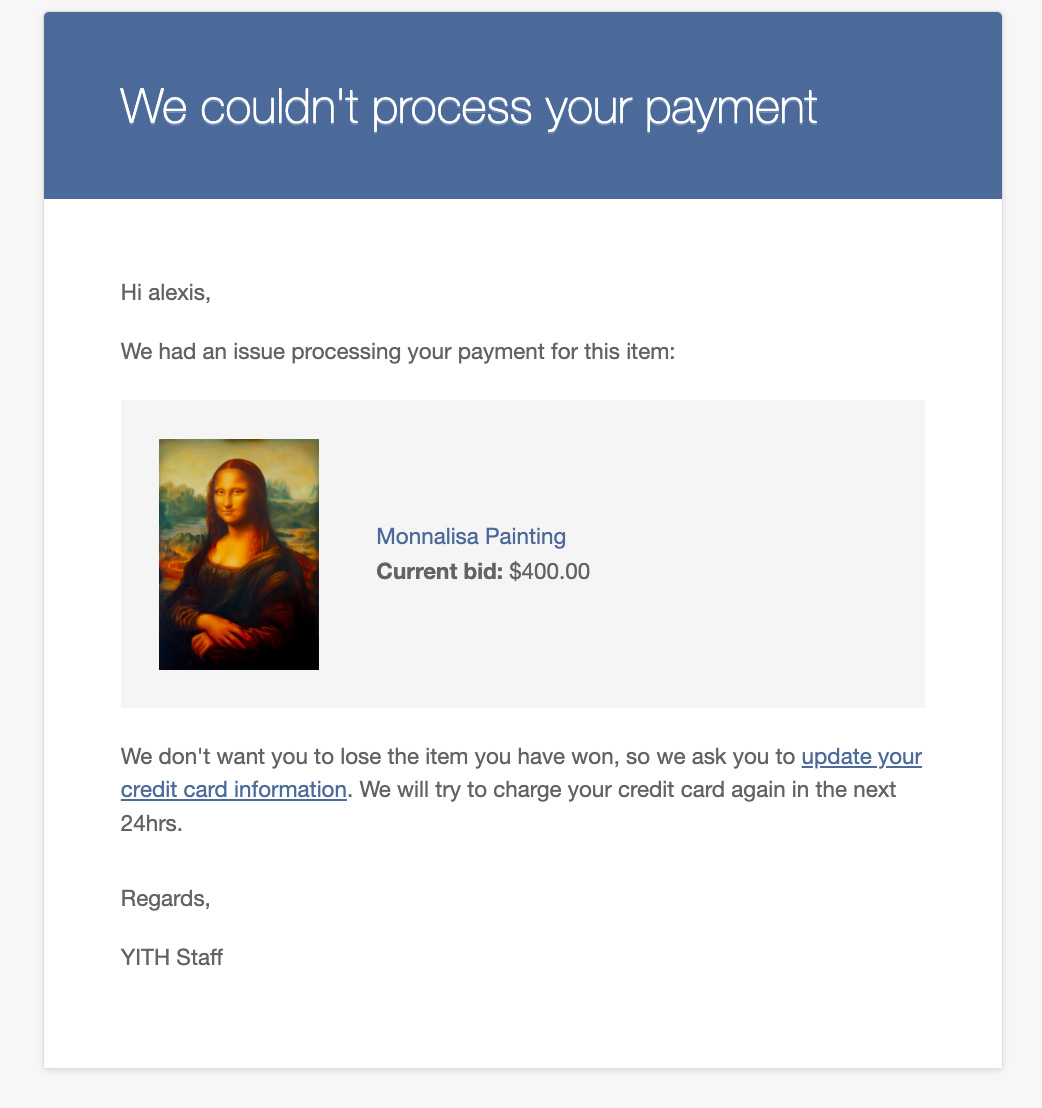 Gracias a la integración con nuestro plugin Stripe, puedes adeudar automáticamente el precio del producto en la subasta en la tarjeta de crédito del usuario que ha ganado la subasta. Esta nueva función hará que tu sitio sea más estable y reducirá el porcentaje de ganancias sin pagar de los usuarios que participan en tus subastas.