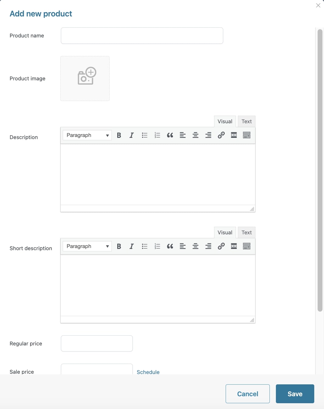 • Modifica o rimuovi descrizione e descrizione breve
