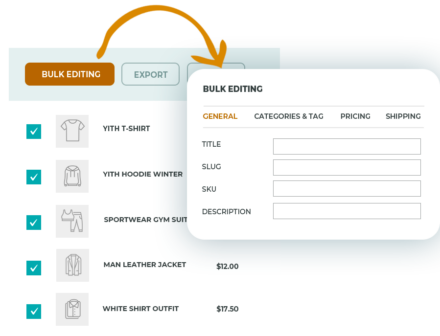 Usando questo plugin con YITH WooCommerce Bulk Product Editing, i venditori potranno modificare i prodotti del loro negozio in modo veloce. Potranno modificare simultaneamente valori come prezzi, descrizione, attributi, tag, categorie e molto altro.