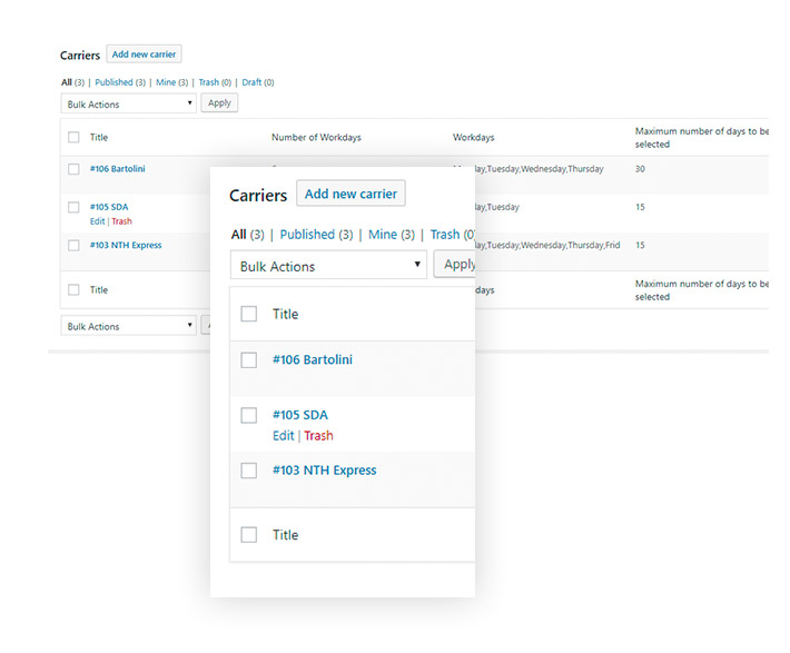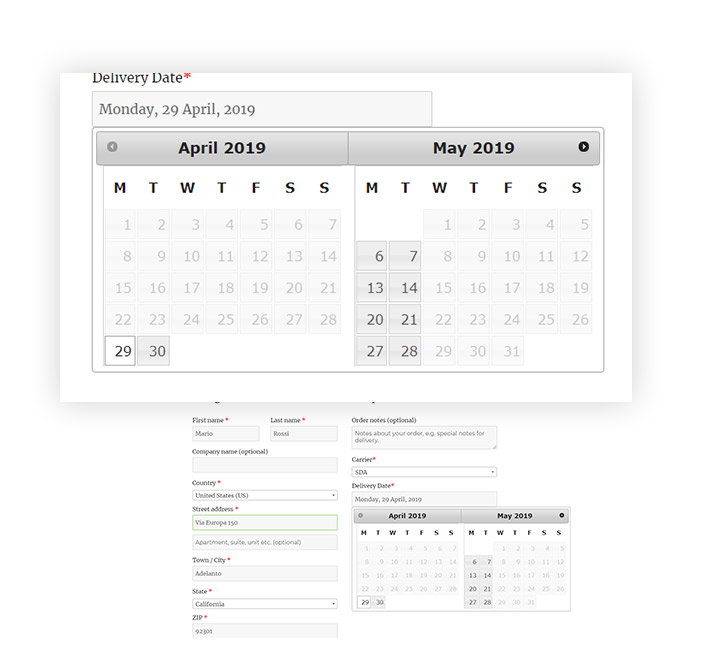 Il plugin ha un'opzione che, nel caso di date di spedizione diverse per i prodotti acquistati nello stesso ordine, considererà la data di consegna più lontana. Quindi se ad esempio il prodotto X richiede 4 giorni per essere spedito e il prodotto Y ne richiede 10, il plugin selezionerà automaticamente 10 giorni per la consegna.