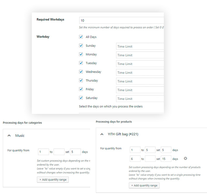 Le date di consegna possono essere impostate in modo globale per gli ordini ma se la spedizione di certi prodotti richiede più o meno giorni rispetto a quanto configurato in “Giorni lavorativi richiesti” puoi creare delle regole personalizzate per i giorni di lavorazione da applicare ad un prodotto specifico o ad una categoria.