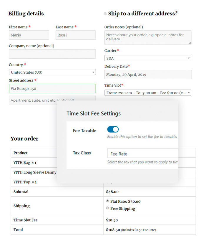 • Plugin di terzi supportati: Flexible Shipping, WooCommerce Distance Rate Shipping, WooCommerce FedEx Shipping, WooCommerce Table Rate Shipping, WooCommerce Tree Table Rate Shipping, WC Pickup Store