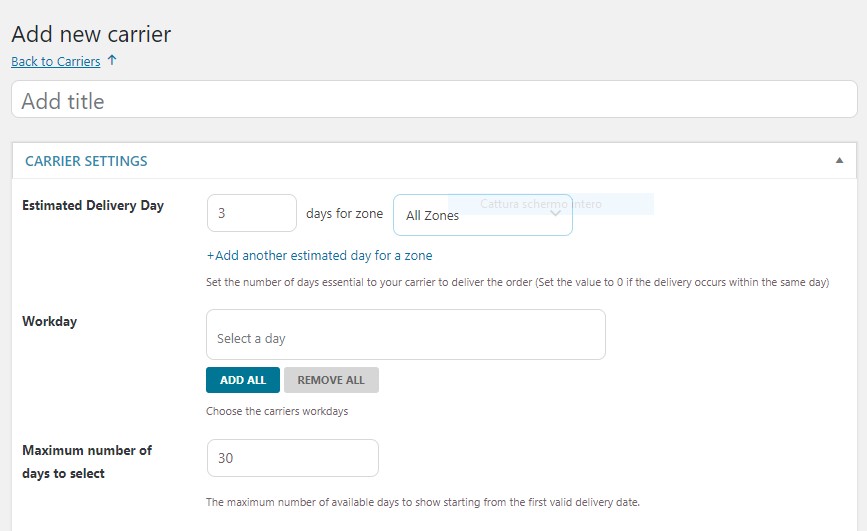 • Specifica il numero massimo di giorni che il corriere impiega per consegnare il prodotto