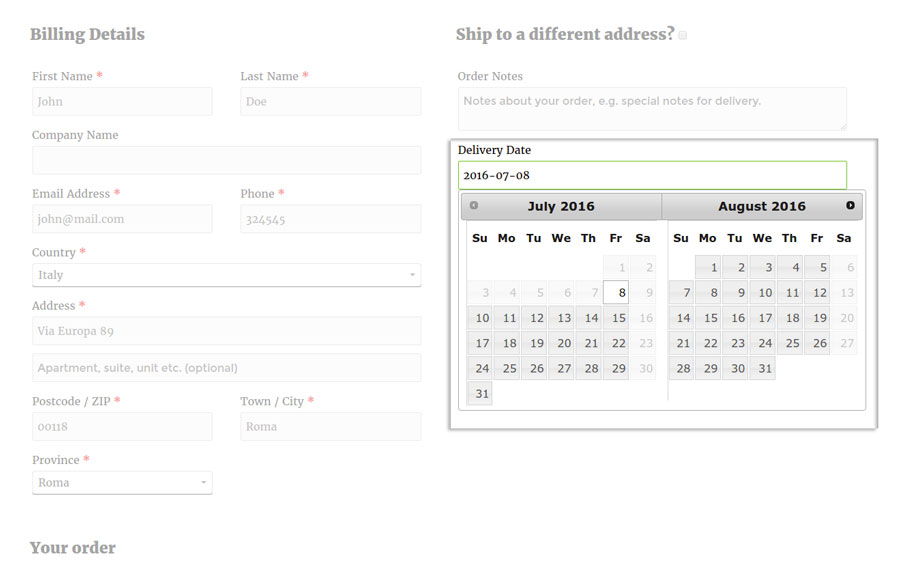 YITH WooCommerce Delivery Date