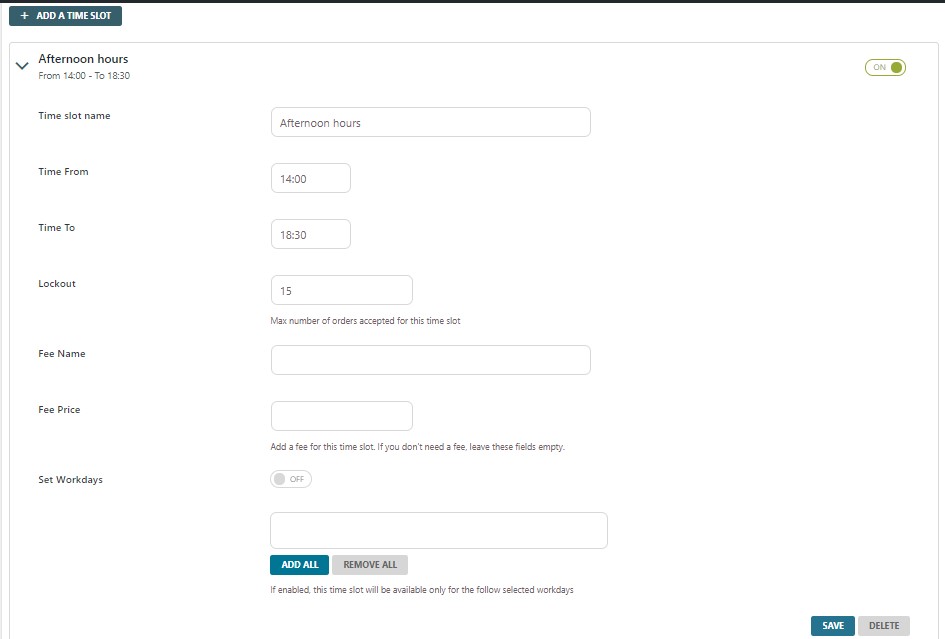 Gli amministratori avranno accesso all’intera serie di preziose funzionalità studiate appositamente per le spedizioni e il servizio di consegna come, ad esempio, la possibilità di impostare un tempo minimo di preparazione dell’ordine.