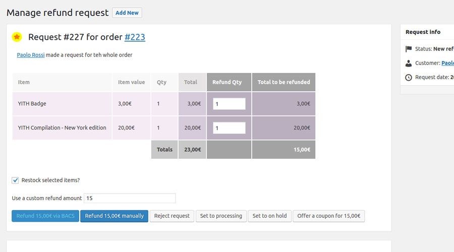 Ecco perché esiste YITH Advanced Refund System for WooCommerce, un plugin che rende le richieste di rimborso accessibili e facilmente gestibili sia da parte dell’amministratore che del cliente.