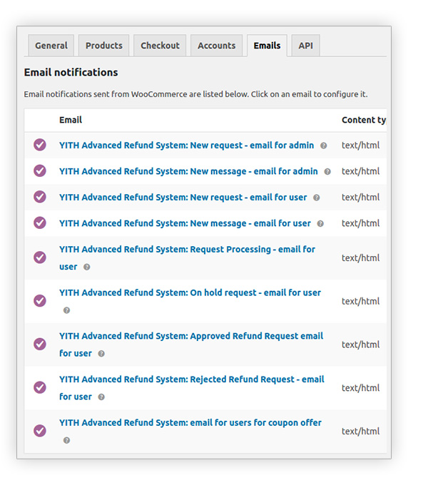 Puoi modificare il contenuto e l’oggetto delle email inviate dal plugin da WooCommerce > Impostazioni > Email.