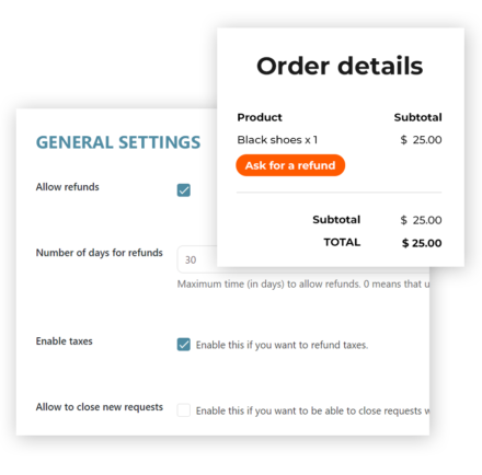 • Abilita le richieste di rimborso per l'intero ordine o per singoli prodotti