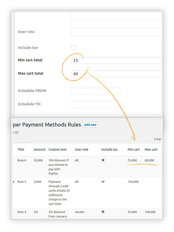 Applicando la regola di pagamento solo se l’importo rispetta i parametri minimo e massimo