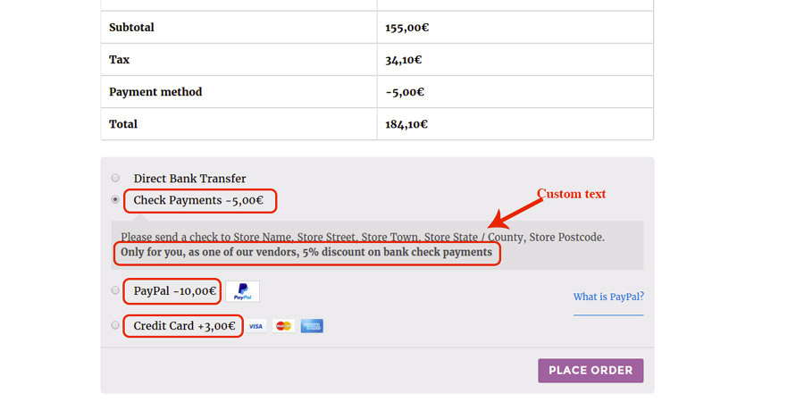 Aumentare o diminuire il costo dell’ordine in base al metodo di pagamento