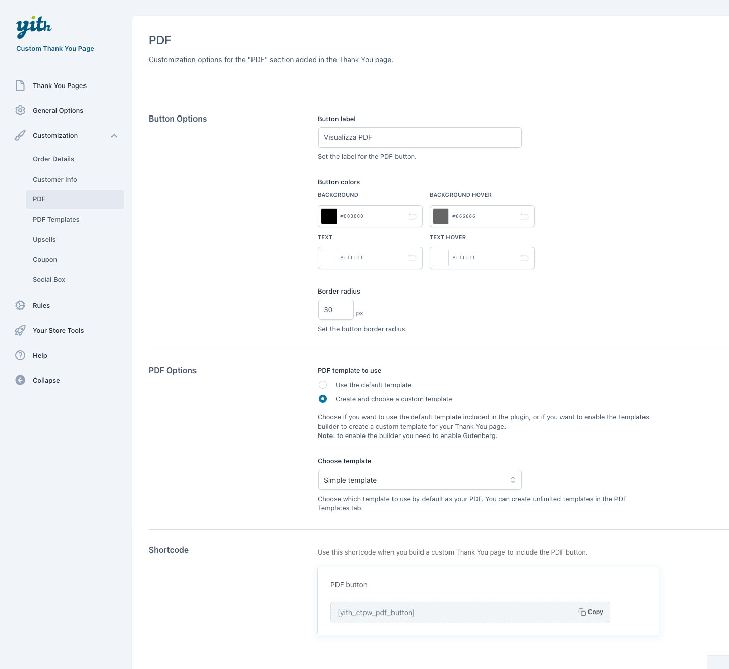 Molti utenti decidono di stampare la pagina di ringraziamento per avere un documento ufficiale con tutti i riferimenti dell’ordine che hanno appena realizzato nello shop. Offri una soluzione user-friendly ai tuoi clienti: crea la versione stampabile della pagina scegliendo e personalizzando uno dei template inclusi con il nuovo editor di Gutenberg integrato nel plugin. Al clic sul pulsante “stampa” l’utente visualizzerà esattamente quello di cui ha bisogno: un PDF con i dettagli dell’ordine, contenuti ad hoc e un design professionale e in linea con il tuo brand.