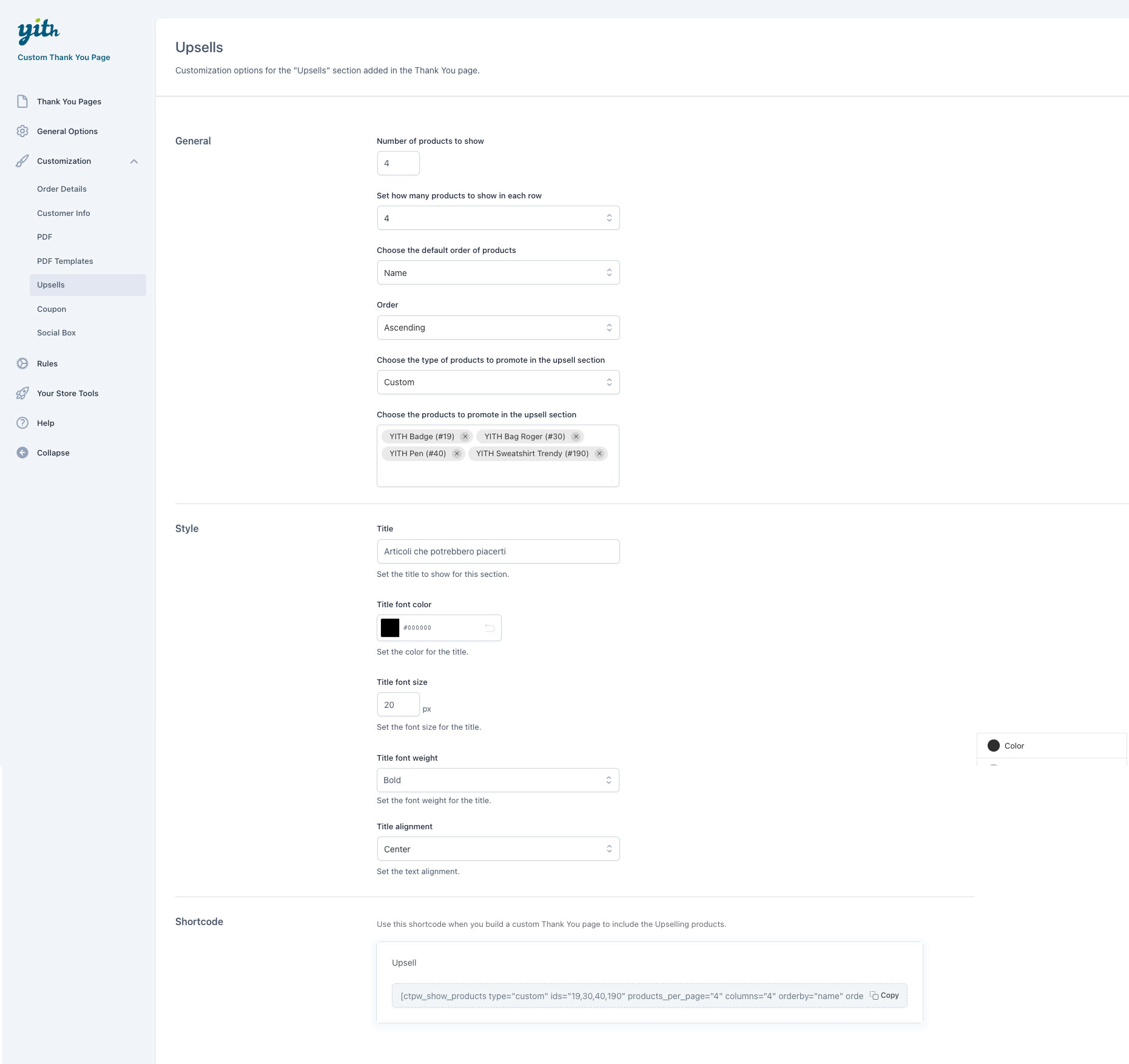 Mostra una sezione upsell per promuovere prodotti correlati, in evidenza o best-seller