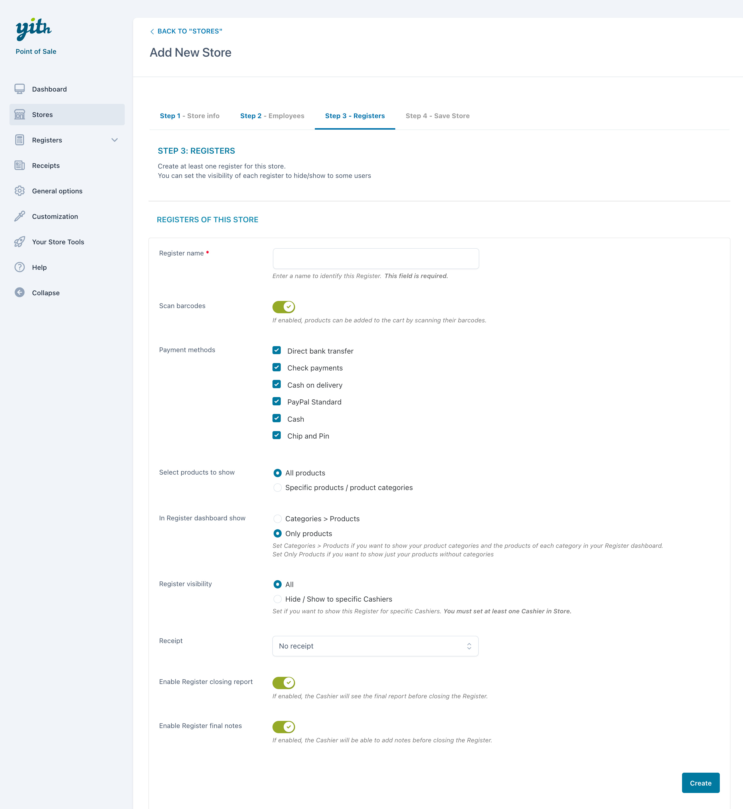 Il plugin ti permette la creazione di infiniti negozi (nel caso tu debba gestire più negozi della stessa impresa, come nel caso di un franchising) e di infinite casse (come nel caso di un supermercato che possiede più reparti con casse dedicate). Ad ogni cassa è possibile associare cassieri diversi, personalizzare lo scontrino, attivare o meno determinati metodi di pagamento, ecc.
