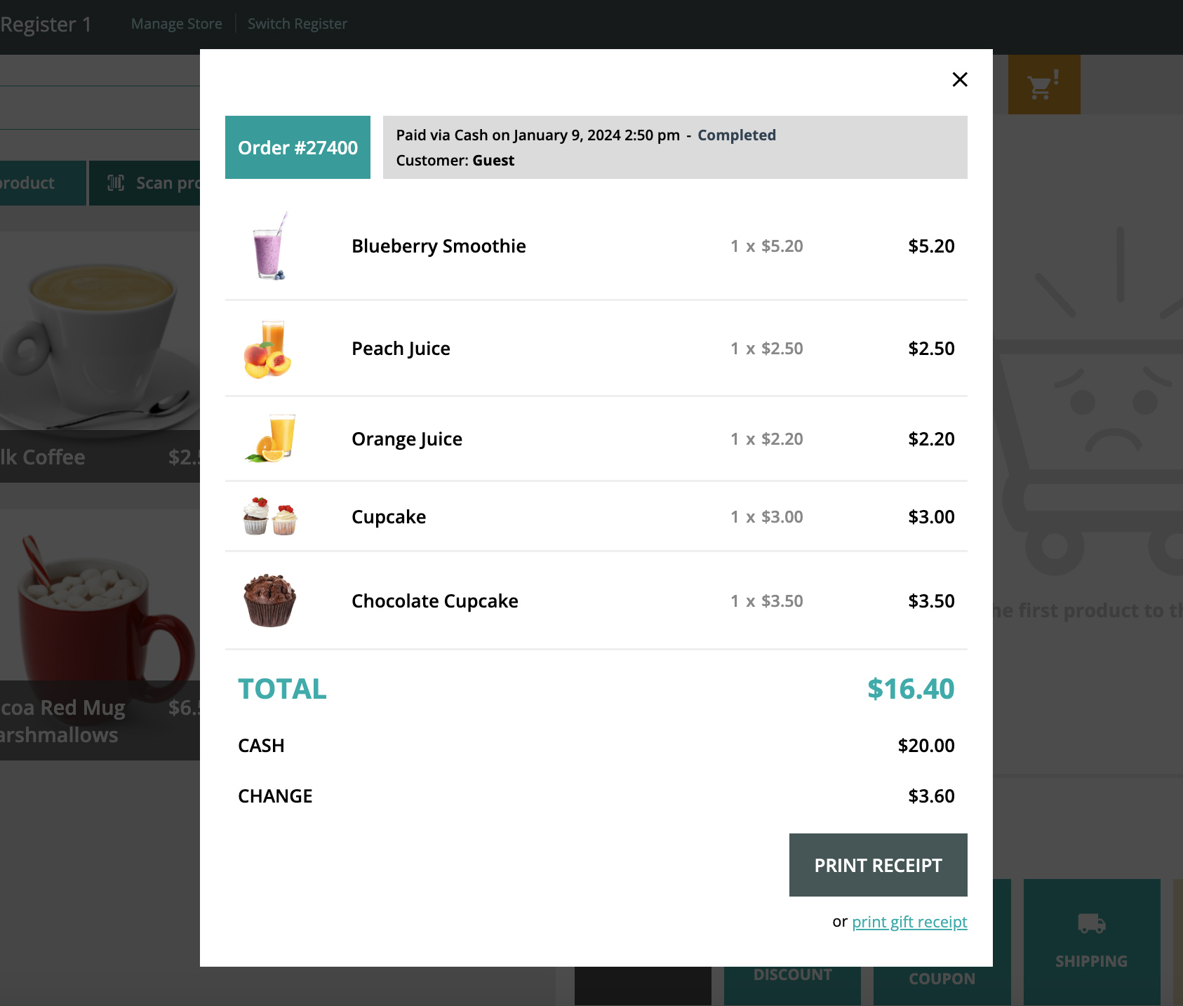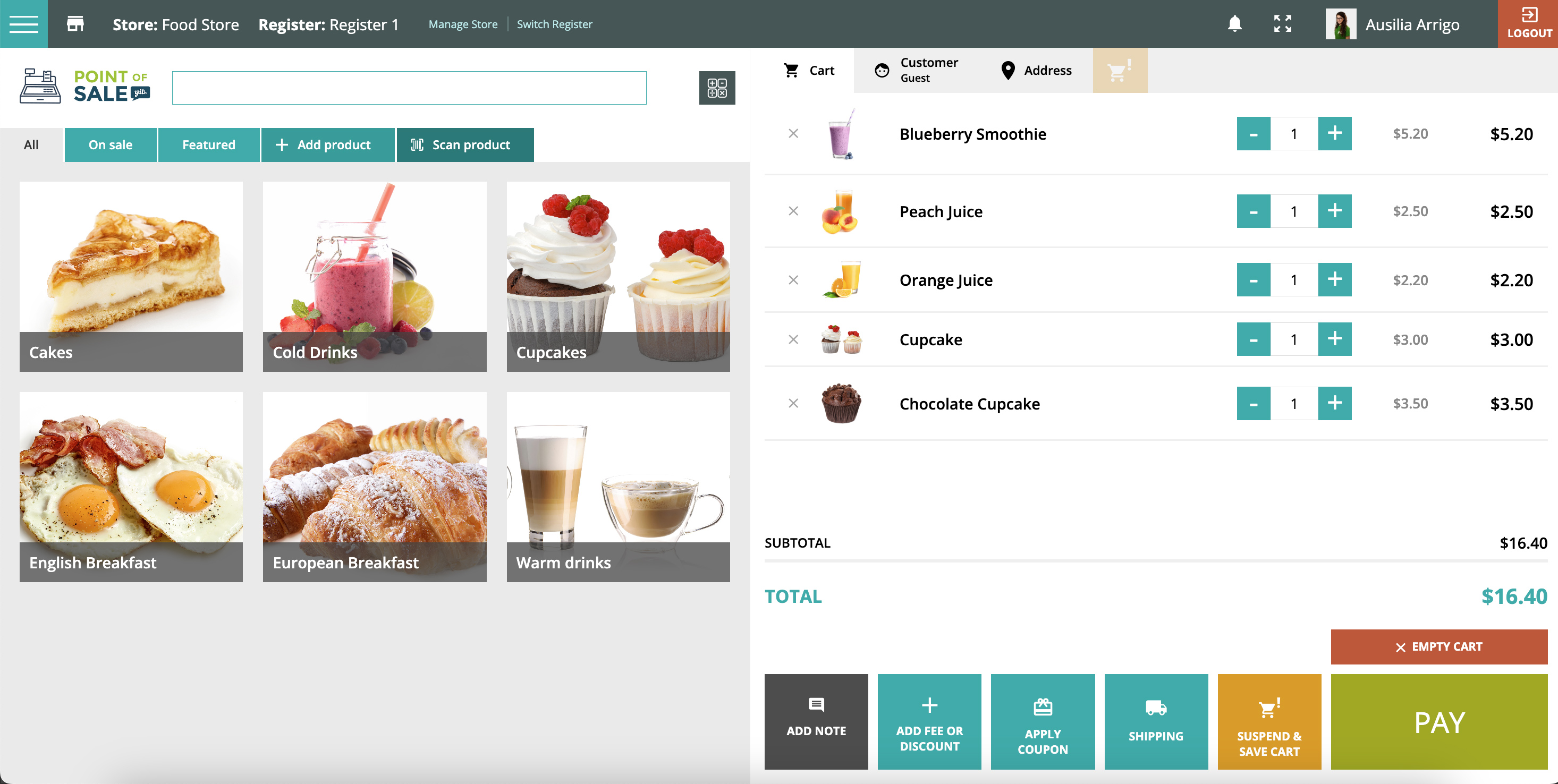 Una gestione dell’ordine a 360 gradi che ti permette di applicare sconti, coupon, sovrapprezzi e di aggiungere note per ogni prodotto e per ogni ordine realizzato attraverso la cassa.