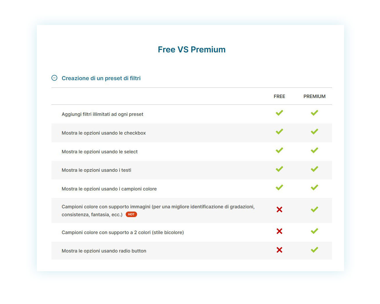 Per aiutarti a comprendere meglio tutta la parte che abbiamo riportato in precedenza, ti offriamo una tabella comparativa tra plugin gratuiti e premium:
