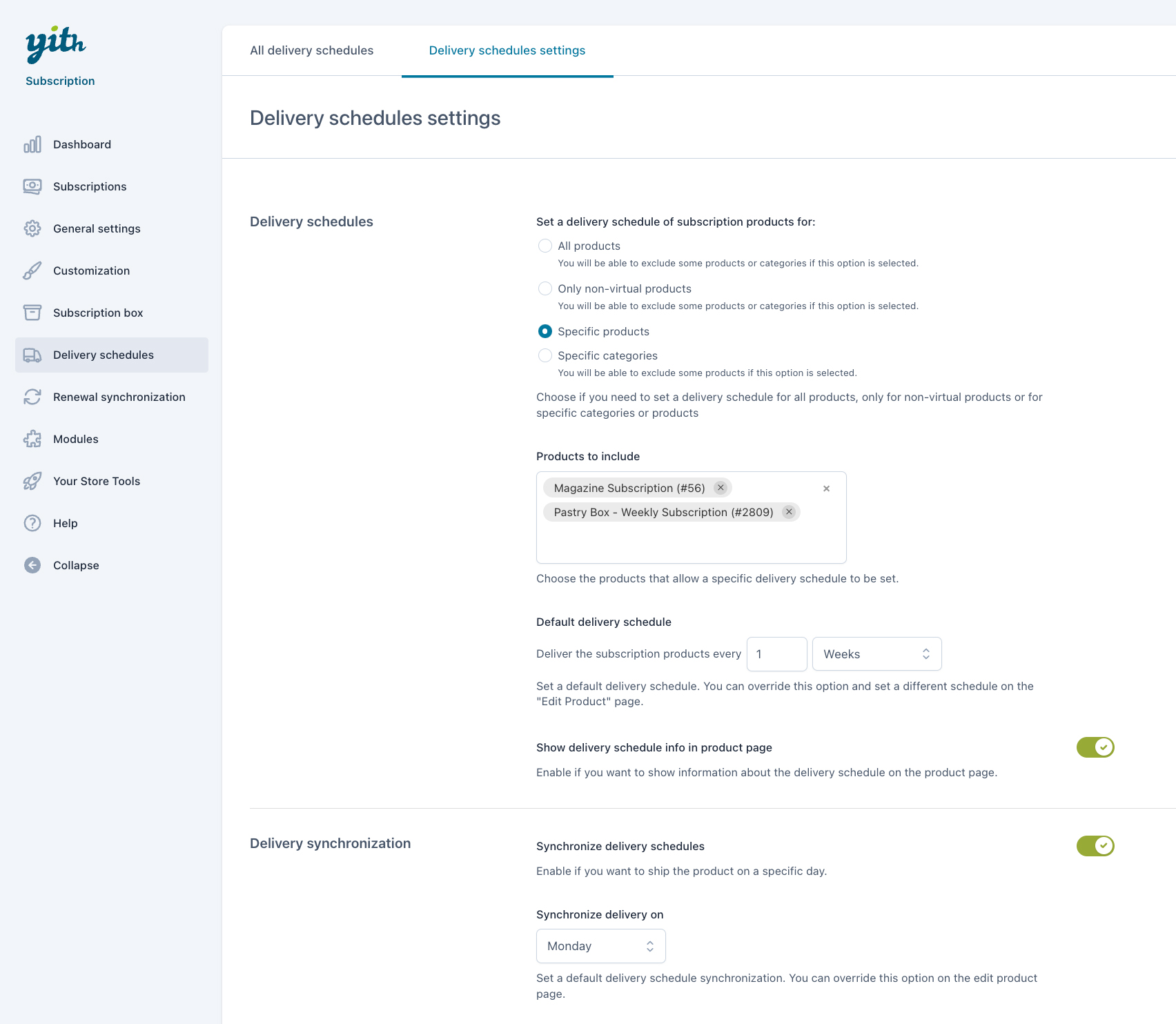 Synchronize subscription product deliveries