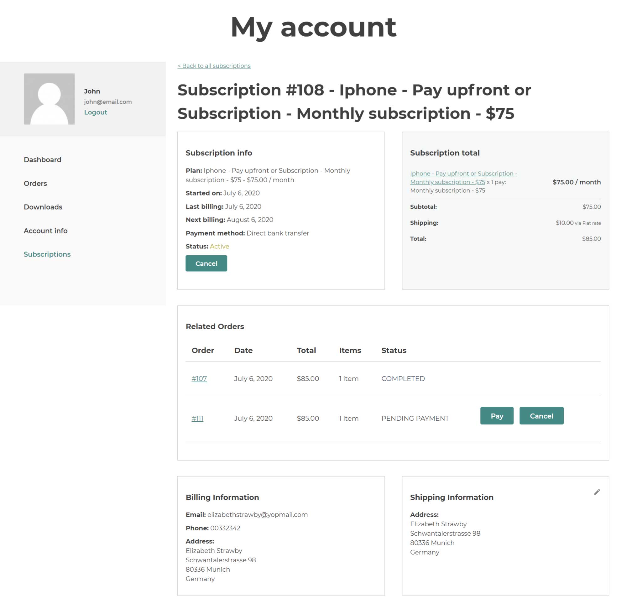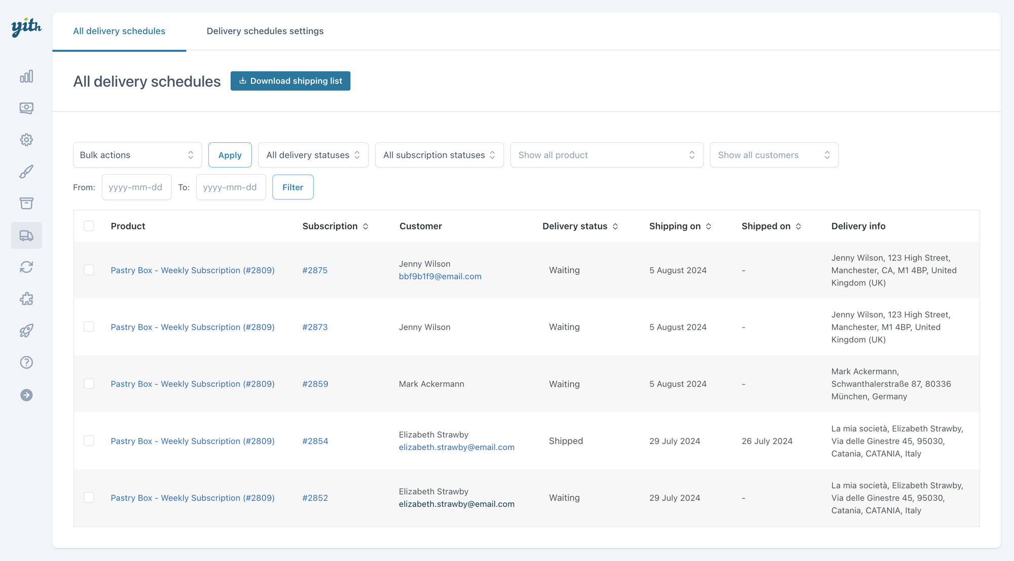 If you are selling subscription products that need to be shipped, you have the option to download a PDF file containing your customers’ addresses. With just one click, you can print labels and attach them to the shipping products.