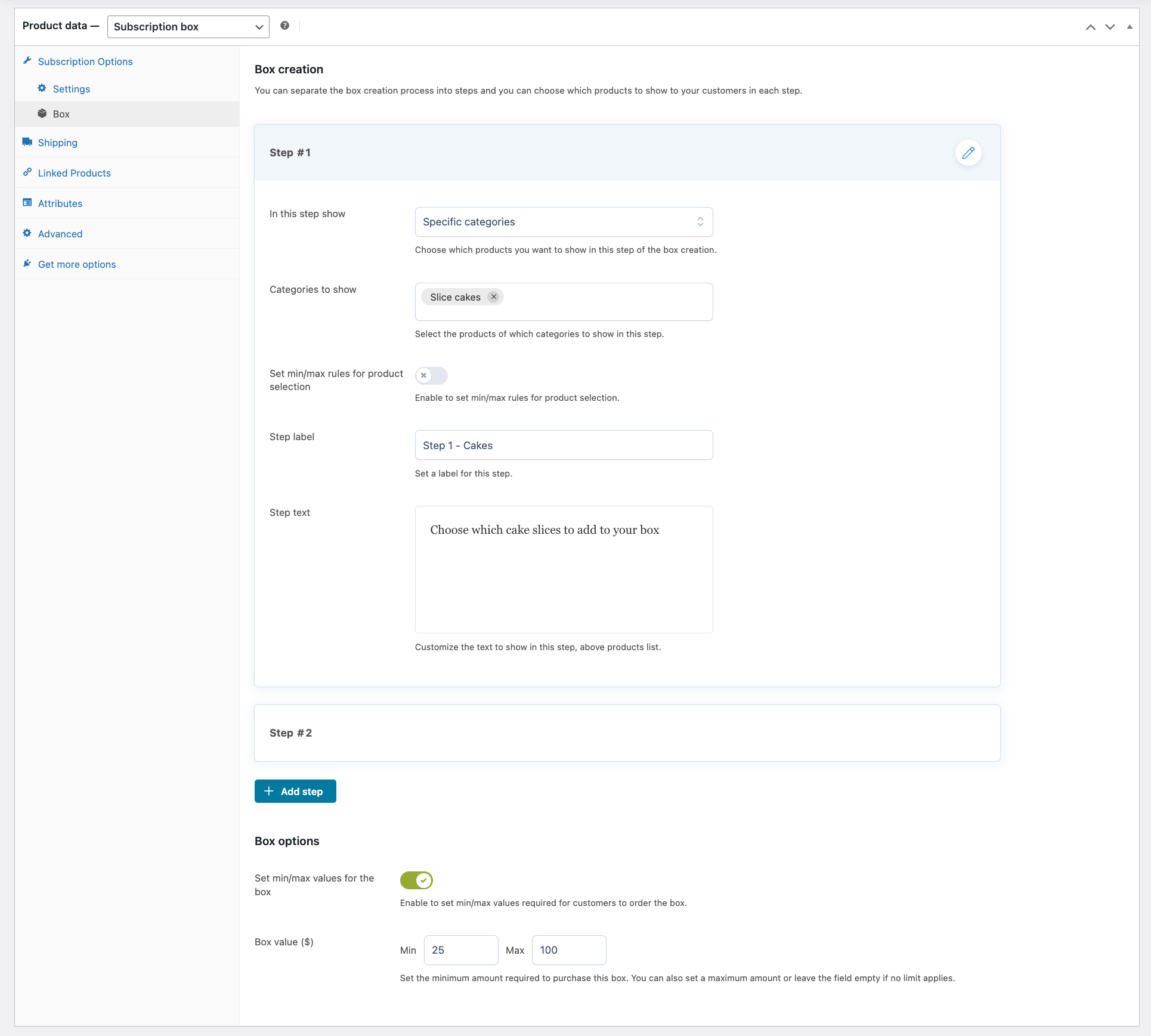From cosmetics to food, from children’s toys to home delivery subscription services. In recent years, the business model of selling themed boxes has become increasingly popular and our plugin is the only one available online that lets your customers subscribe and choose how many and what products to include. You can create a step-by-step process (define which products to show for each step), set the price of the box (fixed price or selected products’ price), and configure advanced rules for minimum box value, minimum and maximum number of products, and more.