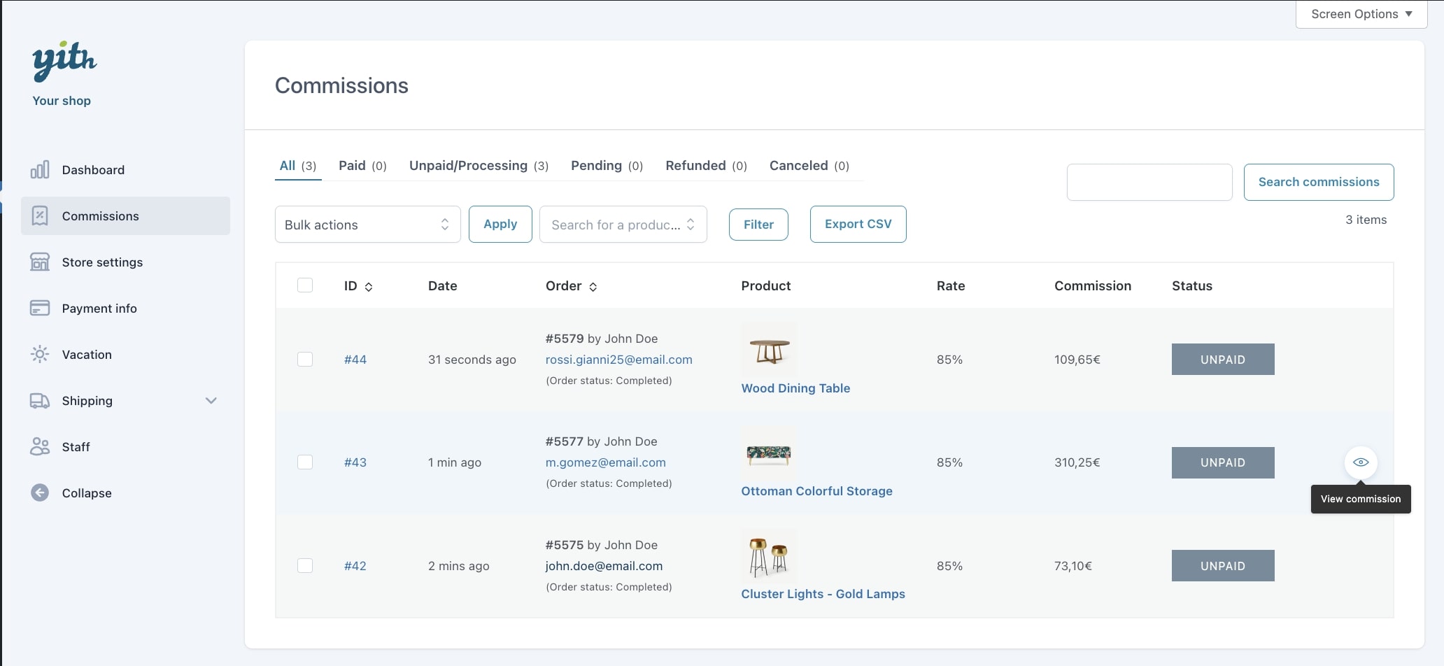 Con YITH WooCommerce Multi Vendor/Marketplace puedes crear y administrar fácilmente cualquier tipo de mercado. Como propietario de un mercado, podrás generar ingresos pasivos al obtener una comisión por cada venta. Cuantos más vendedores tengas en tu tienda, más ventas y, por lo tanto, más ganancias para ti.